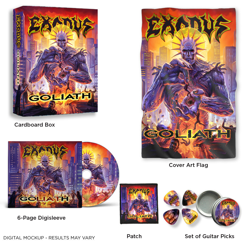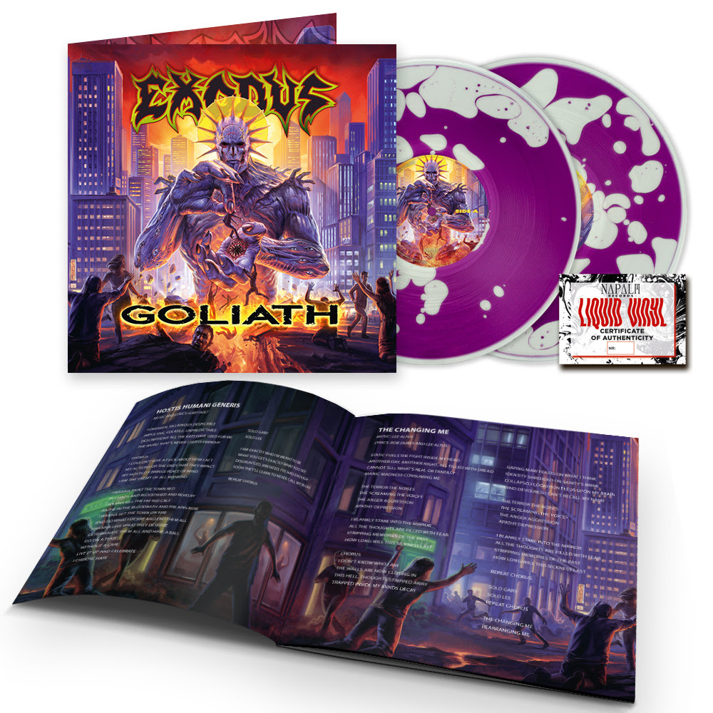 Emerging hungrier than ever in 2026, with Goliath, EXODUS reinforces their eternal foothold at the top of thrash metal's hierarchy with 10 of their most diverse, anthemic emissions to date. Further fueled by the widely embraced return of iconic late-era frontman Rob Dukes – first appearing on 2005’s Shovel Headed Kill Machine – the album boasts what the band describes as the performance of his life. Goliath is EXODUS’ most collaborative record in their four decade-plus history, featuring songs written by several band members and guest contributions from Peter Tägtgren (Hypocrisy, Pain) and violinist Katie Jacoby.